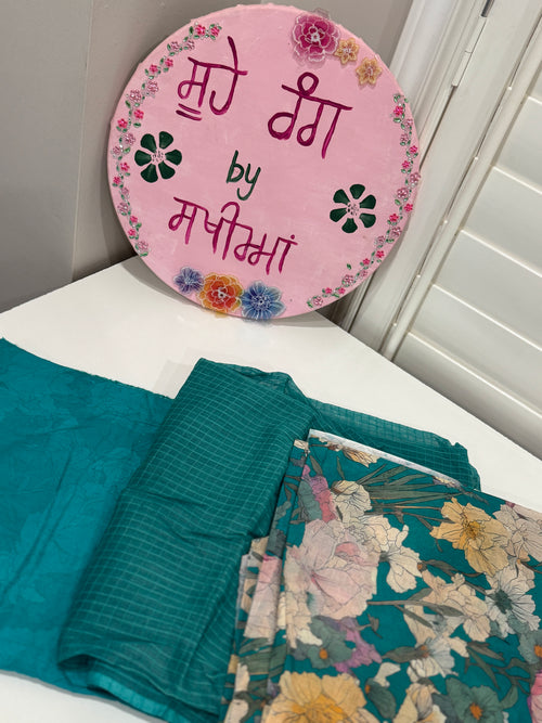 Blue Floral Cotton Suit
