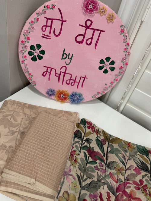 Beige Floral Print Cotton Suit