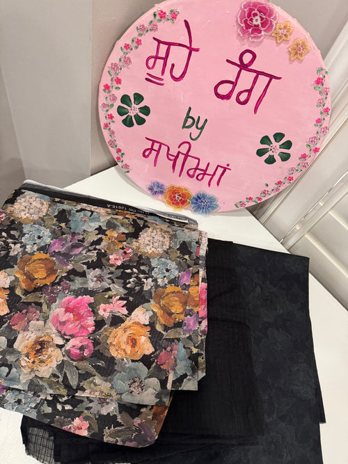 Black Floral Print Cotton Suit