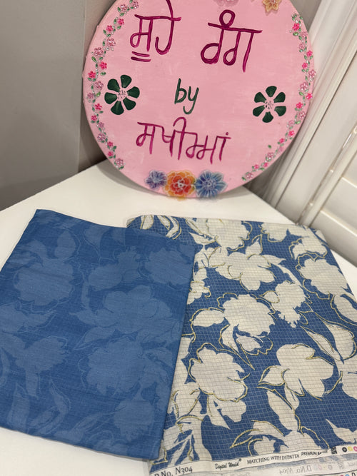 Blue Floral Cotton Suit